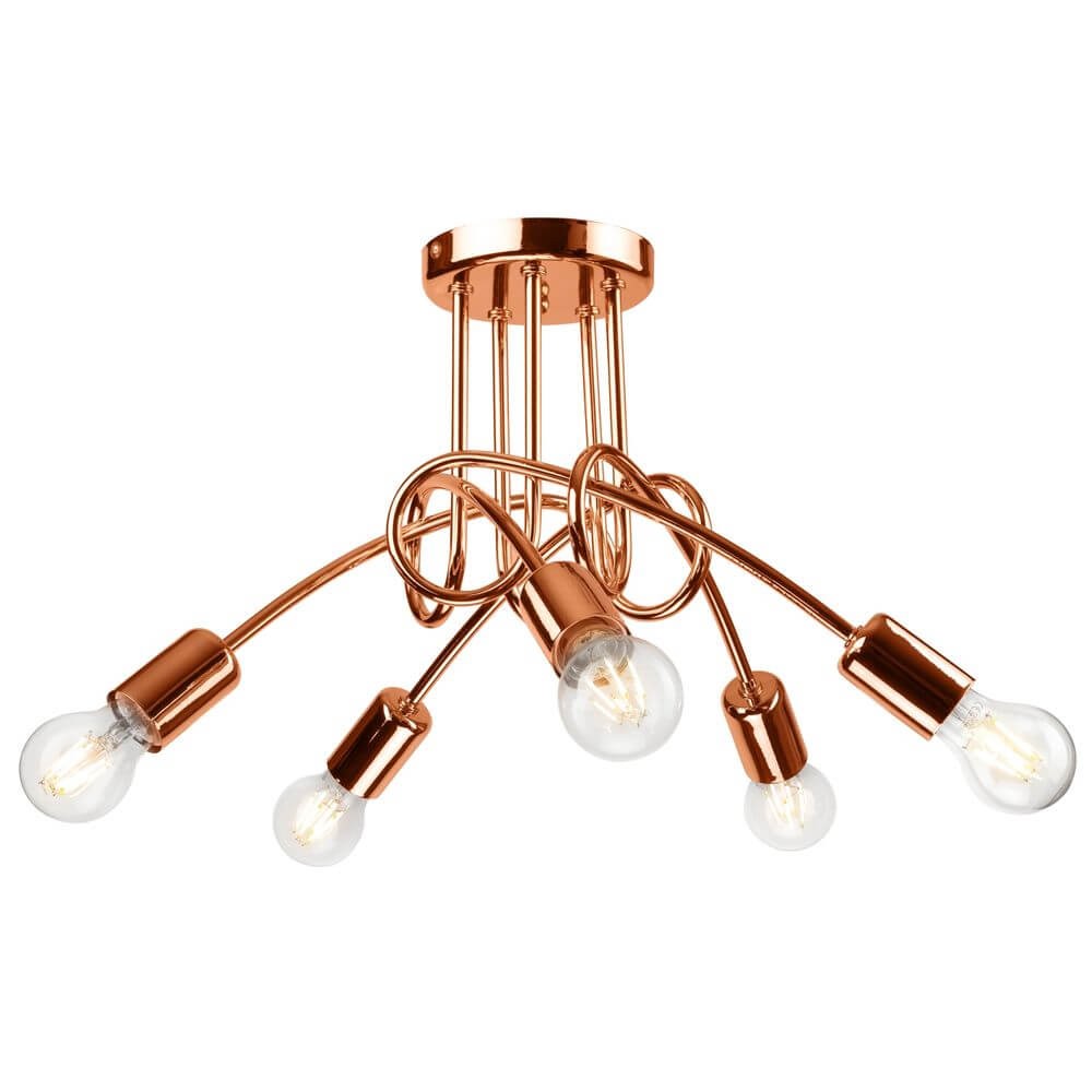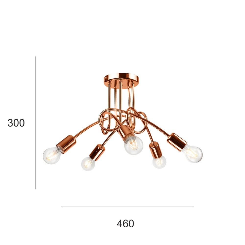 • Hochwertige Deckenleuchte 5x E27 in Kupfer aus Metall.