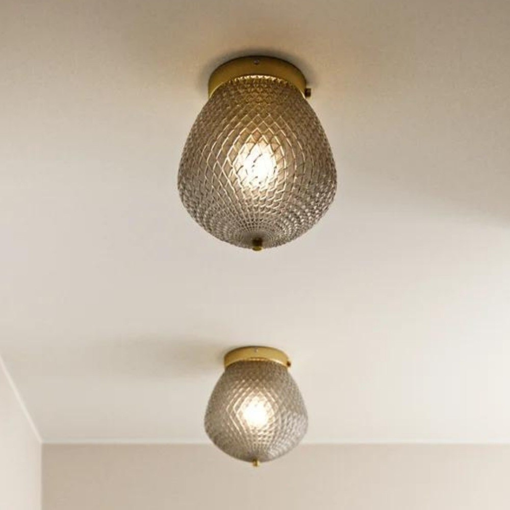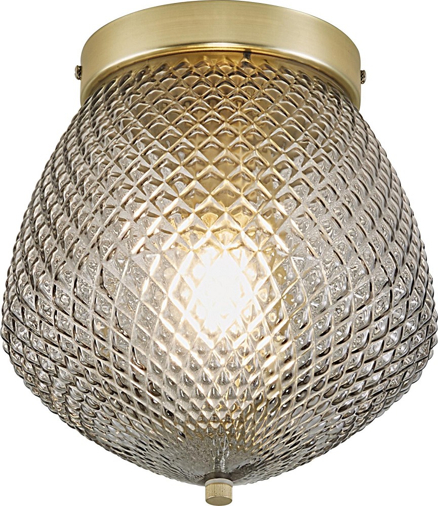 Orbiform verströmt Exklusivität und Glamour. Die Serie kombiniert gebürstetes Messing mit einer Glaskuppel in Pentagonform, die mit einem schönen Diamantenmuster verziert ist, welches den Glanz des Glases hervorhebt und im Raum für eine einzigartige Lichtwirkung sorgt. Das schöne Glas erinnert an Zeiten, in denen Kristall, welches sich in der Einrichtung wieder großer Beliebtheit erfreut, ein wichtiges Einrichtungselement war. Die Orbiform Deckenleuchte trägt zu einer stilvollen Atmosphäre und einer glamourösen Stimmung bei, wobei das Lichtmuster den Raum auf eine besonders schöne Weise füllt. Bringen Sie sie im Eingangsbereich, im Flur, im Badezimmer oder an einem anderen Ort an, an dem es zu wenig Platz gibt, um eine Pendelleuchte an der Decke aufzuhängen.