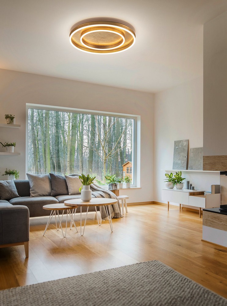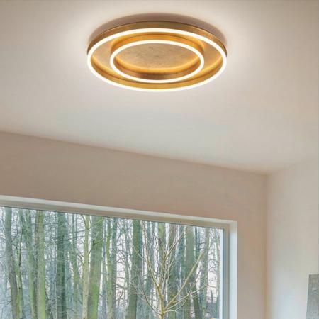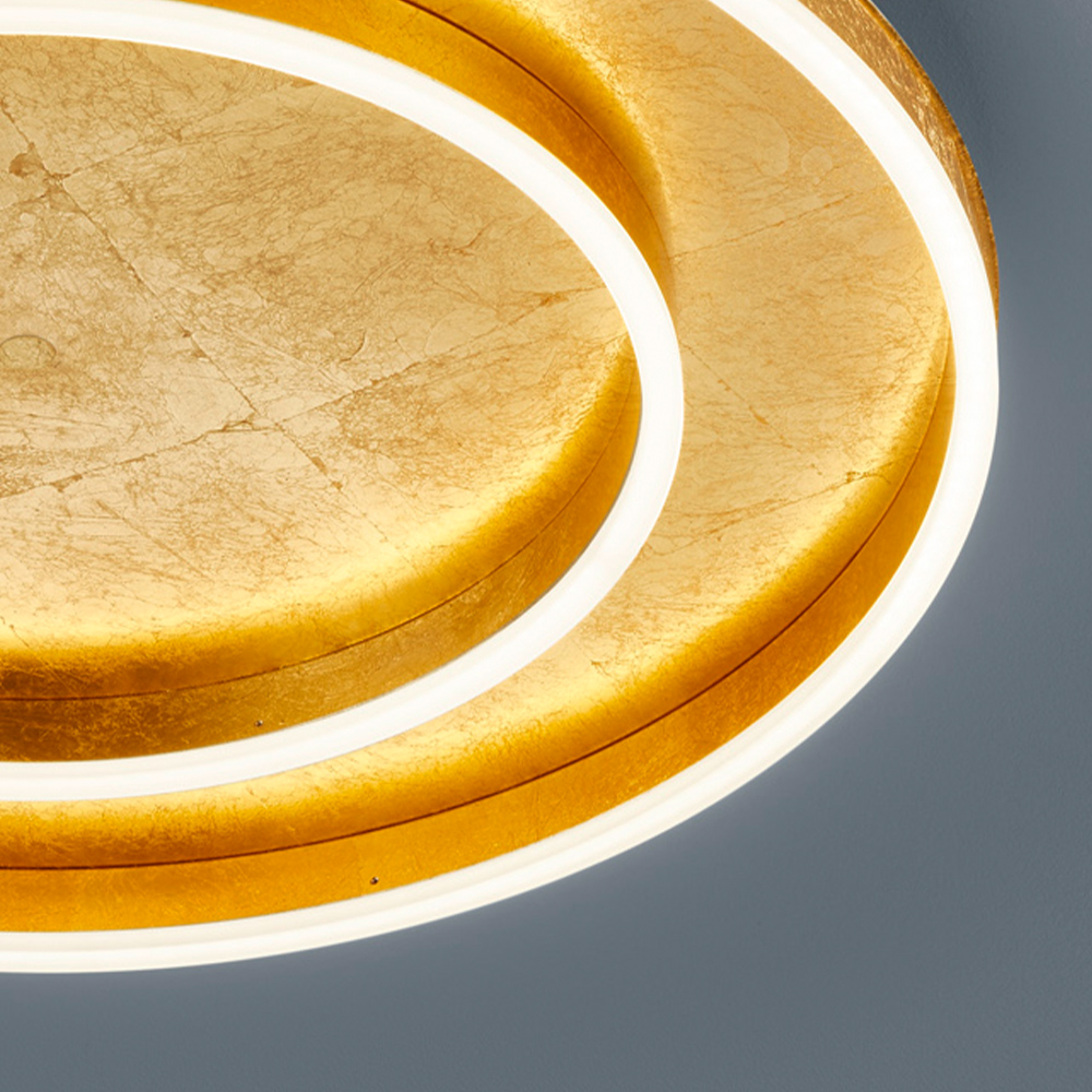 Die beiden warmweißen LED Lichtringe sorgen mit der Reflektion durch die goldene Lampenoberfläche für ein einzigartiges Lichtambiente. Schließen Sie die Deckenleuchte an Ihre Hausinstallation an, um die Lichtintensität via Wanddimmer beliebig zu regulieren. So passen Sie die Beleuchtung jederzeit Ihrer persönlichen Stimmung und Ihren Bedürfnissen an.