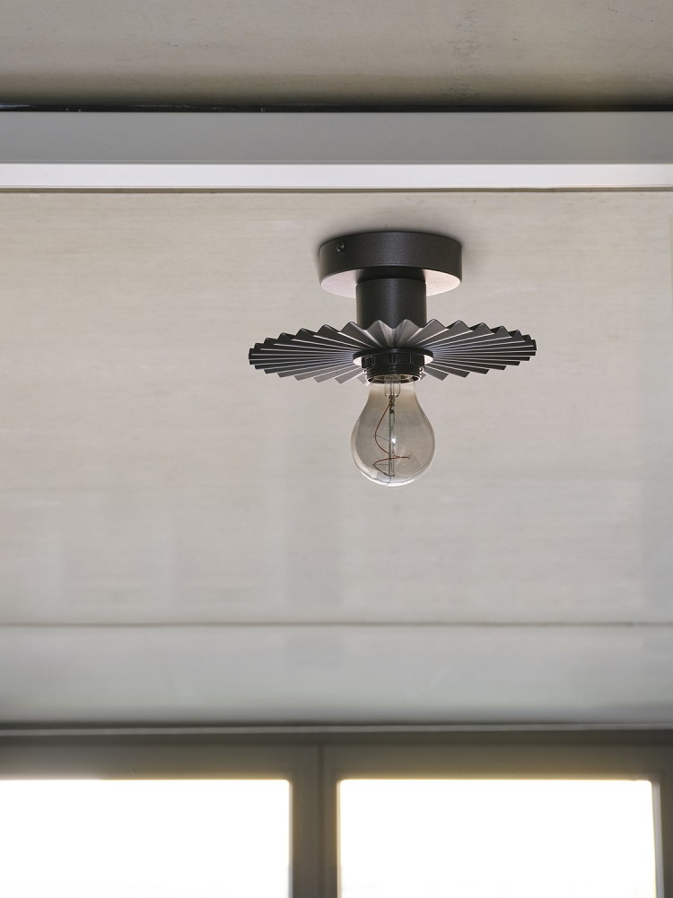 Preview: OSRAM Deckenleuchte Decor Plissee Dunkelgrau aus Stahl mit E27 Fassung Ø 20cm