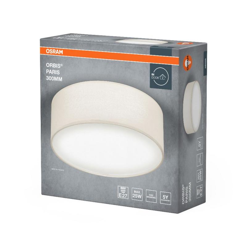 Die Deckenleuchte Orbis Paris bietet dank ihres textilen Schirms und des Diffusors aus PVC eine homogene und angenehme Lichtabstrahlung in den Raum. Diese Leuchte eignet sich sowohl für den Wohnraum als auch für Flure oder das Schlafzimmer. Du hast die Möglichkeit, Leuchtmittel deiner Wahl (maximal 15 Watt LED) zu verwenden, um die Lichtfarbe und Helligkeit der Leuchte ganz nach deinen Vorlieben oder dem Einsatzzweck anzupassen.