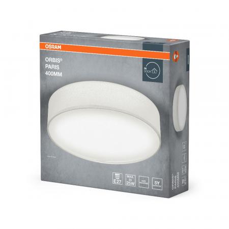 Die Deckenleuchte Orbis Paris bietet dank ihres textilen Schirms und des Diffusors aus PVC eine homogene und angenehme Lichtabstrahlung in den Raum. Diese Leuchte eignet sich sowohl für den Wohnraum als auch für Flure oder das Schlafzimmer. Du hast die Möglichkeit, Leuchtmittel deiner Wahl (maximal 15 Watt LED) zu verwenden, um die Lichtfarbe und Helligkeit der Leuchte ganz nach deinen Vorlieben oder dem Einsatzzweck anzupassen.