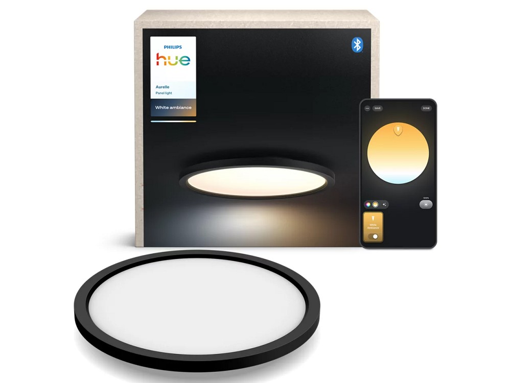 Mit der runden Aurelle Philips Hue White Ambiance Flächenleuchte können Sie ganz einfach warm- bis kaltweißes Licht erzeugen. Nutzen Sie die integrierten Lichtszenen und steuern Sie die Lampe sofort mit dem mitgelieferten Philips Hue-Dimmschalter oder über die Philips Hue Bluetooth-App. Mit einer Philips Hue Bridge können Sie alle intelligenten Lichtfunktionen nutzen.