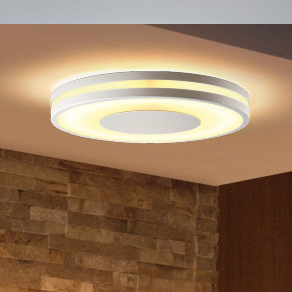 Die schicke schlichte Philips Hue LED Deckenleuchte ist dafür gedacht, daheim je nach Stimmung verschiedene Lichtszenen zu erzeugen. Mit Philips Hue können Sie das Licht bequem vom Sofa aus oder von unterwegs steuern. Mit den Lichtzeitplänen ist es außerdem möglich, die Beleuchtung zu automatisieren. Aufgrund des eingebauten LED-Leuchtmittels können Sie Ihre Lichtfarbe selbst bestimmen. Komfortabel läßt sich aus der Ferne warmweißes Licht oder neutralweißes Licht auswählen. Letztlich für viele Situation das passende Licht. Auch die Lichthelligkeit können Sie via App-Steuerung regulieren.
