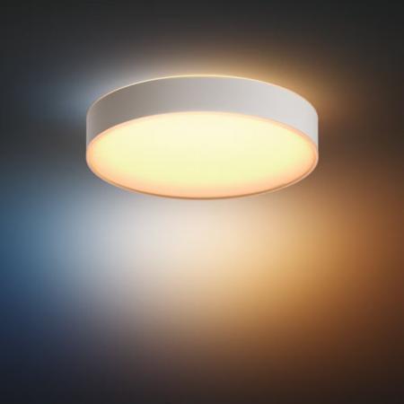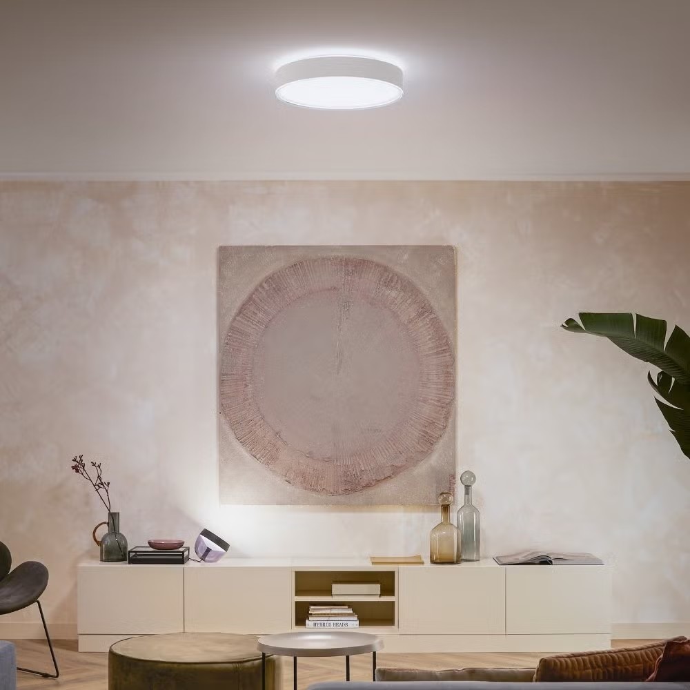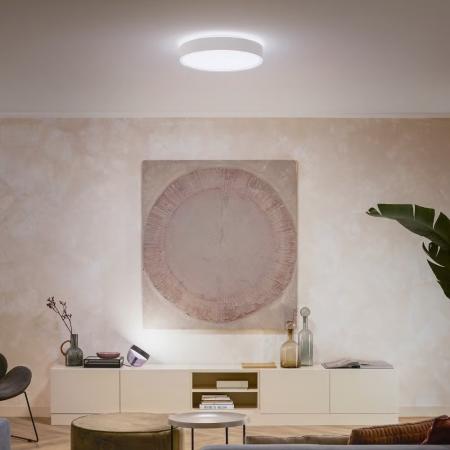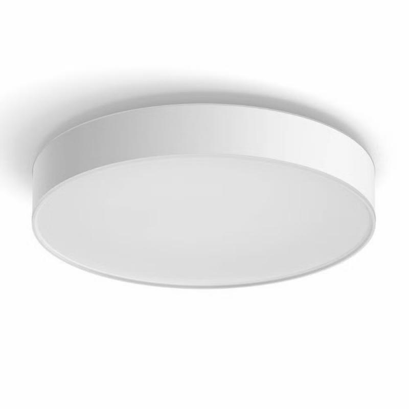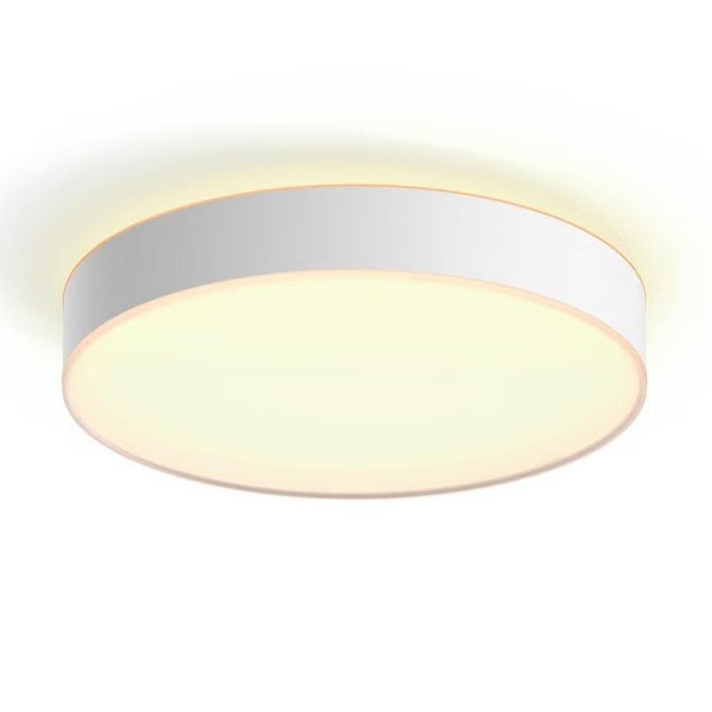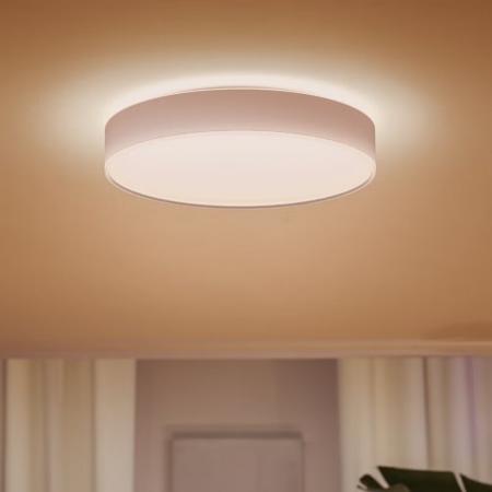 Philips Hue Enrave ist eine intelligent steuerbare LED-Deckenleuchte mit Dimmschalter, die helles, großflächiges Licht liefert. Die runde LED-Deckenleuchte mit ihrer einstellbaren Helligkeit ist perfekt für jeden Raum in Ihrem Haus oder Ihrer Wohnung. Mit ihren verschiedenen Lichteinstellungen schafft sie zu jeder Zeit die richtige Atmosphäre in Ihrem Raum. Sie verfügt über den sogenannten "ZigBee-Standard", so dass eine Integration in ein bestehendes Smart-Home-System möglich ist. Allerdings muss dafür eine Bridge (siehe Zubehör) vorhanden sein. Ist diese Voraussetzung gegeben, wird die Lampe einfach per Smartphone oder Tablet mit der Philips Hue-App (kostenlos im App-Store erhältlich) verbunden und kann dann nach Belieben gesteuert werden.