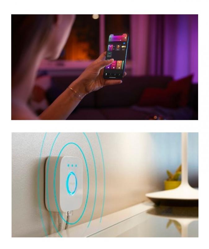 Anwendungen: Zur Nutzung einer Sprachsteuerung mittels Amazon Alexa, Google Assistant oder Apple HomeKit ist die Verbindung mit einer extra erhältlichen Philips Hue Bridge notwendig. Durch Nutzung der Bridge ist eine Steuerung von Zuhause oder unterwegs und viele Lichtsteuerungen bei bis zu maximal 50 Leuchtmitteln im ganzen Wohnraum möglich.