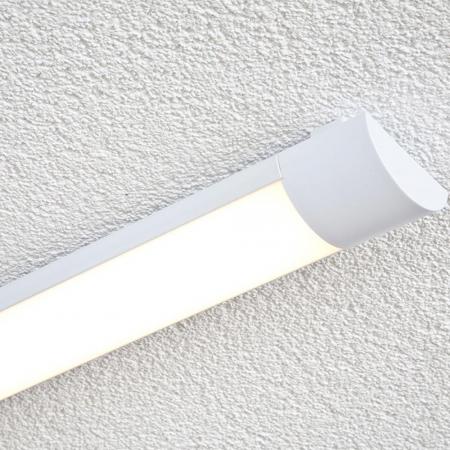 Die LED-Lichtleiste kann aufgrund der hohen Lichtausbeute problemlos als Hauptbeleuchtung für zahlreiche Räume eingesetzt werden. Dank des eleganten Designs fügt sie sich dabei harmonisch in jede Umgebung ein. Die Kabeleinführung in den Klemmraum, welcher unauffällig hinter der seitlichen Abdeckung untergebracht ist, erfolgt von der Rückseite. Sollte kein Anschluss direkt an der Decke vorhanden sein, kann die Leuchte mit den mitgelieferten Abstandshaltern montiert werden, wodurch das Kabel seitlich zugeführt werden kann. Die Abstandshalter haben eine Aufbauhöhe von 10mm.