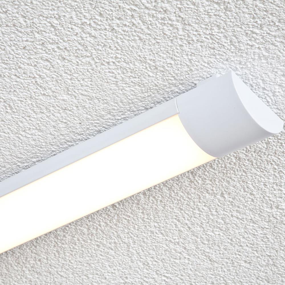 Die LED-Lichtleiste kann aufgrund der hohen Lichtausbeute problemlos als Hauptbeleuchtung für zahlreiche Räume eingesetzt werden. Dank des eleganten Designs fügt sie sich dabei harmonisch in jede Umgebung ein. Die Kabeleinführung in den Klemmraum, welcher unauffällig hinter der seitlichen Abdeckung untergebracht ist, erfolgt von der Rückseite. Sollte kein Anschluss direkt an der Decke vorhanden sein, kann die Leuchte mit den mitgelieferten Abstandshaltern montiert werden, wodurch das Kabel seitlich zugeführt werden kann. Die Abstandshalter haben eine Aufbauhöhe von 10mm.