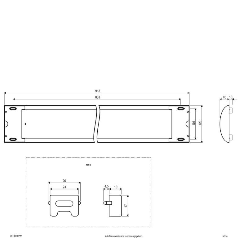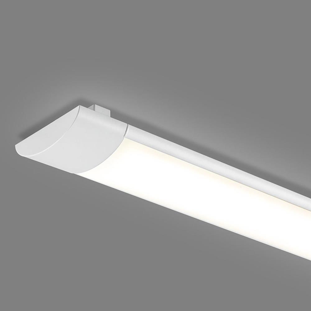 Die LED-Lichtleiste kann aufgrund der hohen Lichtausbeute problemlos als Hauptbeleuchtung für zahlreiche Räume eingesetzt werden. Dank des eleganten Designs fügt sie sich dabei harmonisch in jede Umgebung ein. Die Kabeleinführung in den Klemmraum, welcher unauffällig hinter der seitlichen Abdeckung untergebracht ist, erfolgt von der Rückseite. Sollte kein Anschluss direkt an der Decke vorhanden sein, kann die Leuchte mit den mitgelieferten Abstandshaltern montiert werden, wodurch das Kabel seitlich zugeführt werden kann. Die Abstandshalter haben eine Aufbauhöhe von 10mm.
