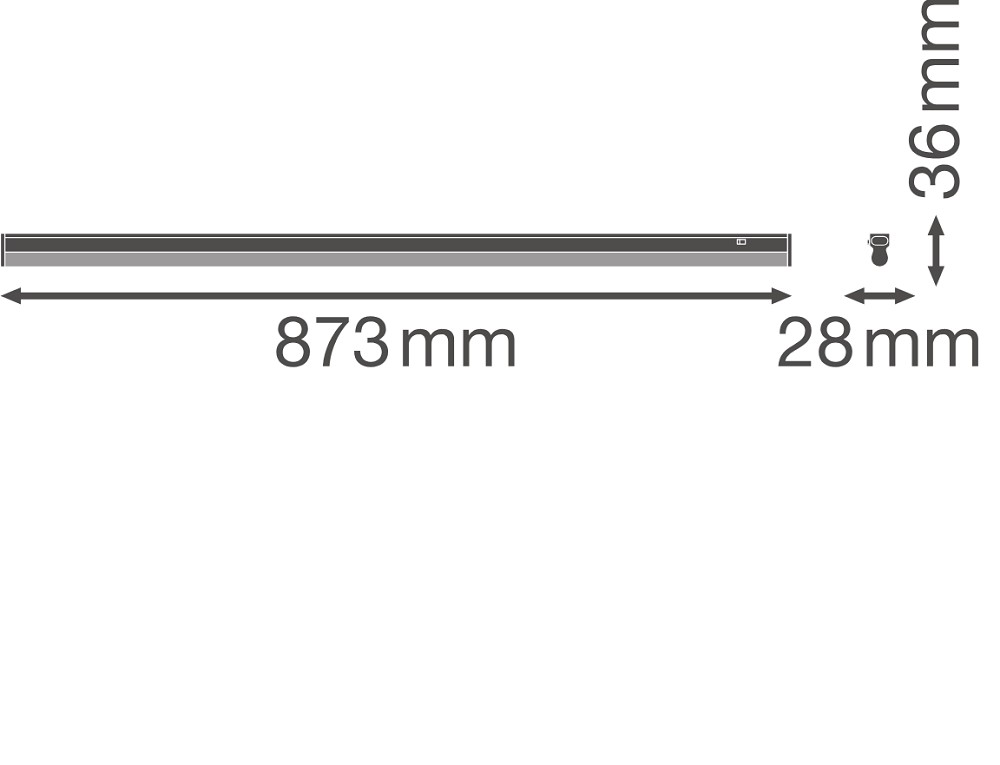 | Abmessungen (L/B/H) | 873 x 28 x 36 mm |