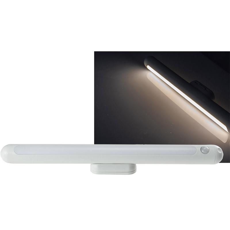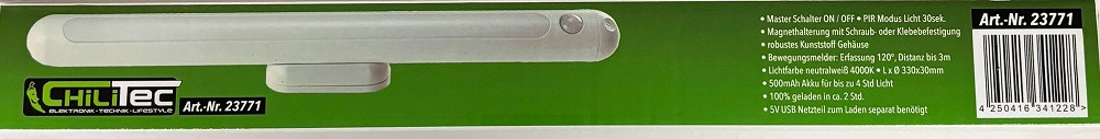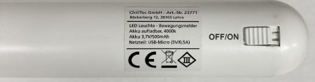 Vielseitig verwendbare Led Akku Sensorleuchte mit einem 120° Abstrahlwinkel für eine breite Ausleuchtung. Sobald der Bewegungsmelder eine Person erfasst, wird das Licht eingeschaltet und nach 30sek Leuchtdauer automatisch ausgeschaltet. Der Li-Ion Akku kann per USB Kabel aufgeladen werden (Ladegerät nicht dabei). Diese mobile akkubetriebene Led-Leuchte ist für viele Bereiche geeignet: Leuchte für Schrank / Kleiderschrank, Orientierungslicht für Treppen und Dachboden, Regalleuchte, Zusatzleuchte für Werkstatt und als Taschenlampe im Wohnmobil beim Campen.