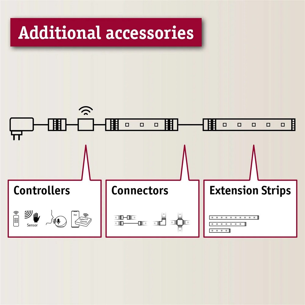 Mit den Paulmann MaxLED Strips wird jede Art von Beleuchtung zum Kinderspiel. Ob eine warmweiße Grundbeleuchtung mit dem MaxLED 1000, konzentrationsförderndes Licht zum Lesen und Arbeiten mit dem MaxLED 500 oder ein atmosphärisches, dekoratives Licht mit dem MaxLED 250: Entdecke ein System, mit dem du jeder Beleuchtungssituation ganz einfach Herr wirst. Wenn du zu denjenigen gehörst, die buntes Licht bevorzugen, kannst du dich über zahlreiche Farbmöglichkeiten freuen. Außerdem bietet dir unser MaxLED System mit dem entsprechenden Zubehör zahllose Möglichkeiten zur Steuerung: Ob per Fernbedienung, smart mittels App oder ganz einfach per Sprachbefehl – realisiere deine Licht-Ideen nach deinen Vorstellungen!