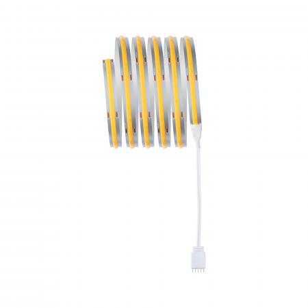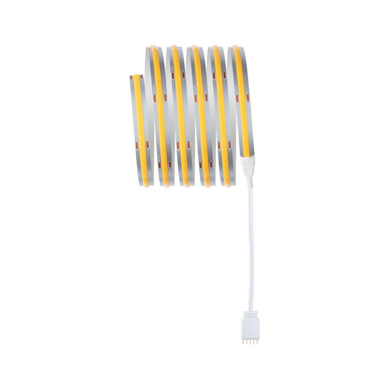 Die MaxLED 1000 Full-Line COB Strips sind so leistungsstark, dass sie problemlos zur Raumausleuchtung eingesetzt werden können. Das MaxLED 1000 COB Basisset mit 528 LED´s/m erzeugt ein absolut homogenes Lichtbild ohne sichtbare Lichtpunkte. Durch den Lichtverbinder ist ein nahtloses Verbinden möglich und führt das lineare Lichtbild ohne Unterbrechung fort. Das Basisset enthält neben dem Streifen, einen 5-Pin Adapter, der die Verbindung zu allen MaxLED Zubehör- und Steuerungskomponenten ermöglicht. Der Strip ist mit 8 mm besonders schmal und passt damit auch in sehr filigrane LED Profile. Der breite Ausstrahlwinkel von 180° verteilt das Licht optimal ohne Schattenbildung. Die durchgängige Phosphorschicht schützt die LED´s vor Staub und Feuchtigkeit, die Kontaktstellen haben IP20. Das warmweiße Basisset lässt sich mit dem passenden Einzelstrip einfach erweitern.