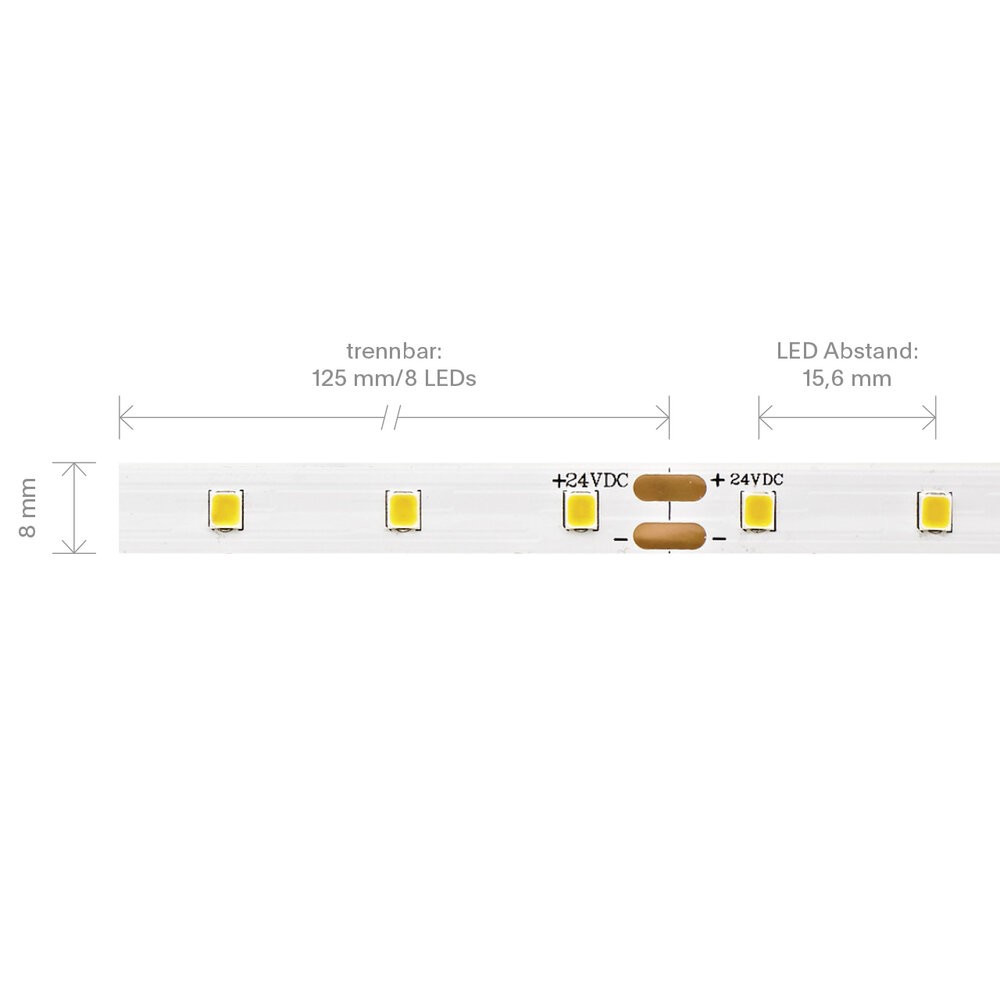 Ein enges Binning mit nur 3 SDCM garantiert eine homogene Lichtfarbe sowohl auf dem Streifen als auch bei unterschiedlichen Streifen dieses Typs.