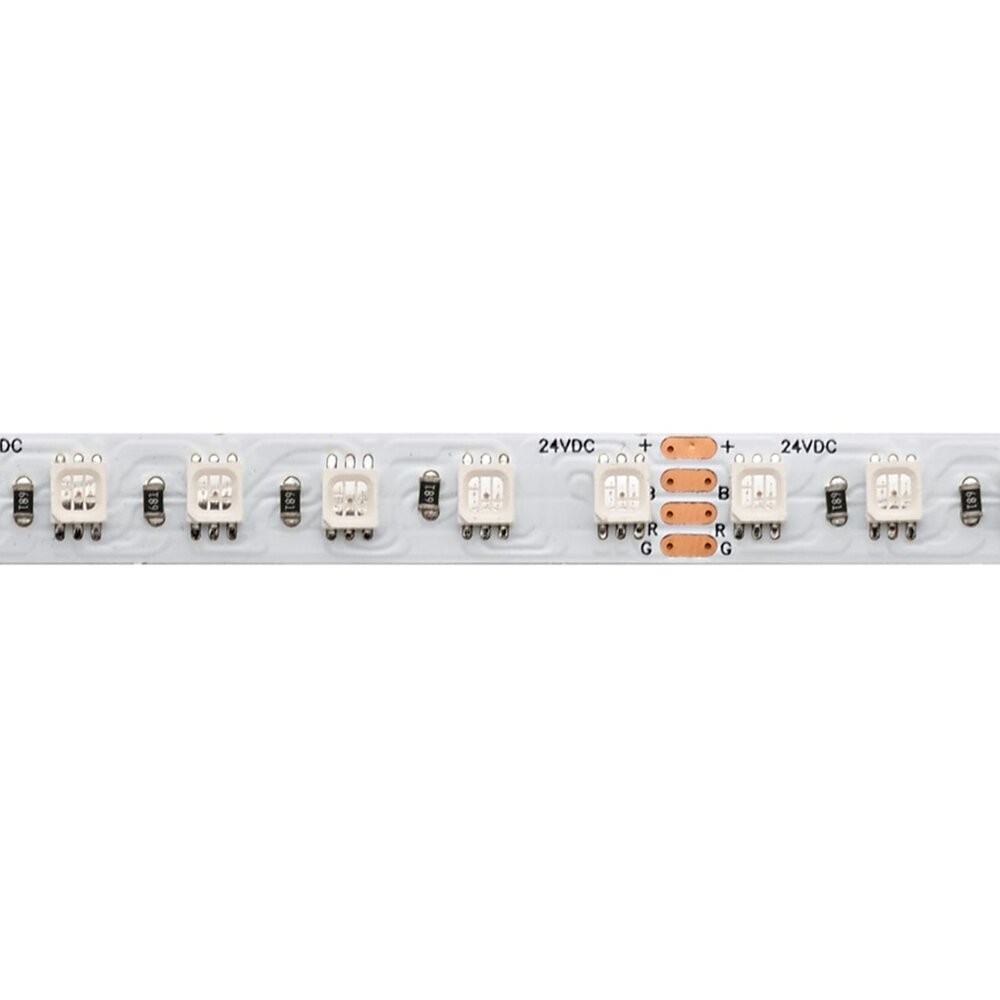 Unsere 14,4W RGB 24V Streifen setzt Licht- und Farbstimmungen im Objekt um. Zu verschiedenen Zeitpunkten setzen Sie mit dem Band verschiedene Lichtfarben in Szene. Die Lichtfarbe lässt sich im RGB Spectrum verschieben.