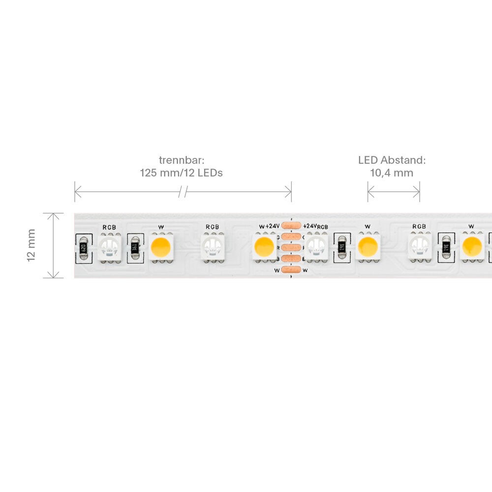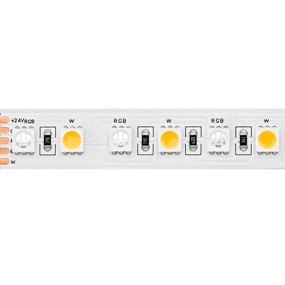 Unsere 19,2 W RGB+W 24V Streifen setzt Licht- und Farbstimmungen im Objekt um. Zu verschiedenen Zeitpunkten setzen Sie mit dem Band verschiedene Lichtfarben in Szene. Die Lichtfarbe lässt sich im RGB Spectrum verschieben. Mit dem zusätzlich verbauten weissen Chip beleuchten Sie Ihr Objekt in einem brillanten Weiss.