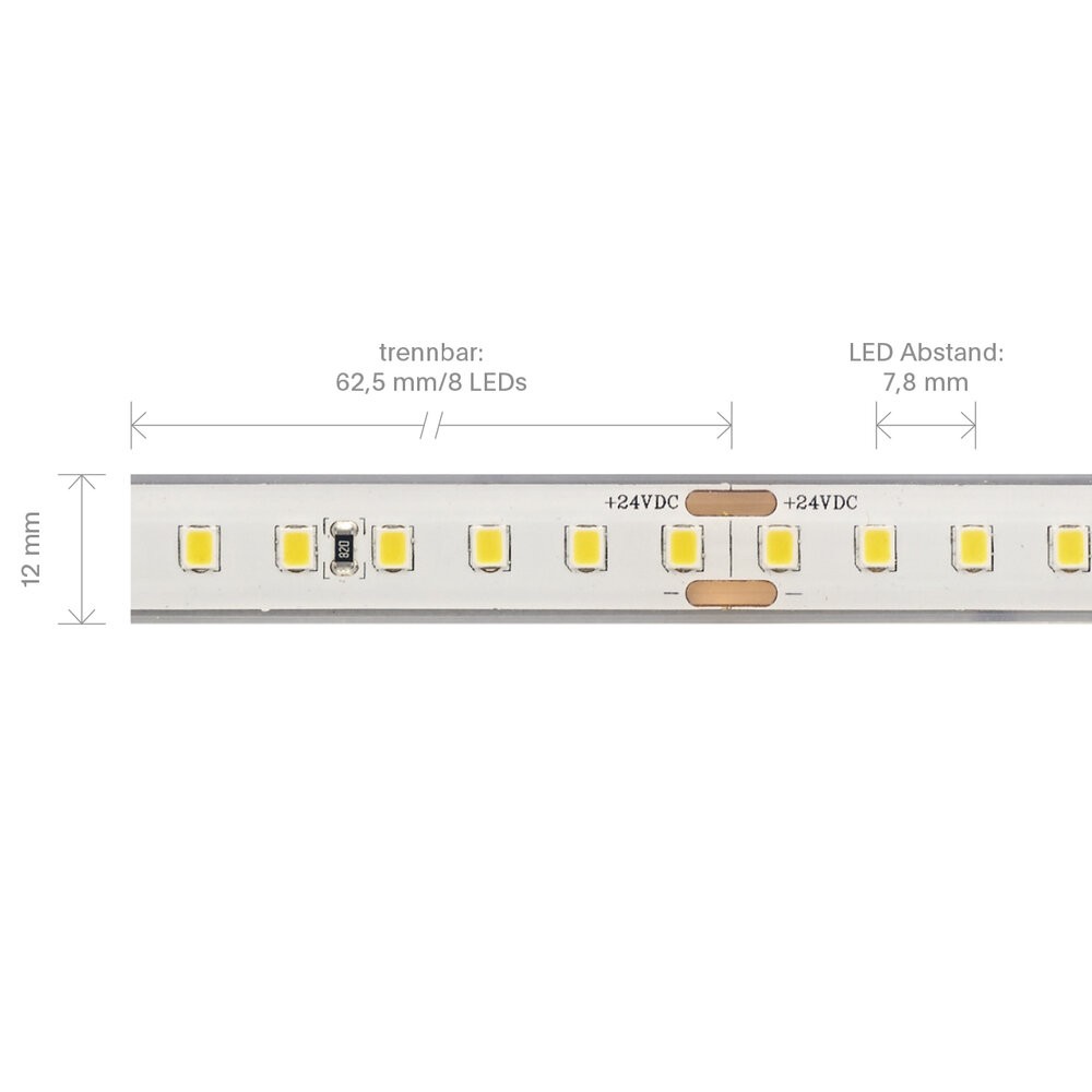Ein enges Binning mit nur 5 SDCM garantiert eine homogene Lichtfarbe sowohl auf dem Streifen als auch bei unterschiedlichen Streifen dieses Typs.