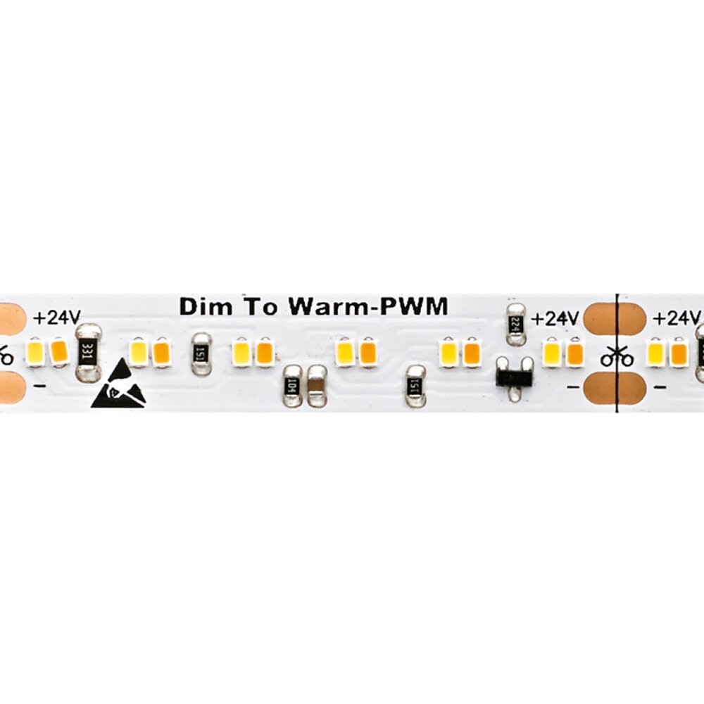 Unsere 20W DIM-TO-WARM IP20 Streifen setzt Licht- und Farbstimmungen im Objekt um. Zu verschiedenen Zeitpunkten setzen Sie mit dem Band verschiedene Lichtfarben in Szene. Beim herunterdimmen des LED-Band verschiebt sich die Lichtfarbe von 2.700K auf 2.300K.