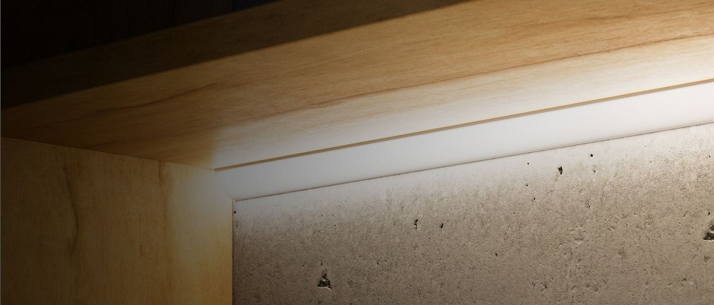In Verbindung mit einer matten oder opalen Abdeckung wird das Licht gestreut und das Lichtbild deutlich homogener. Alternativ kann auch eine klare Abdeckung verbaut werden. In das Profil können LED-Streifen bis zu einer maximalen Breite von 21,1mm eingebaut werden.