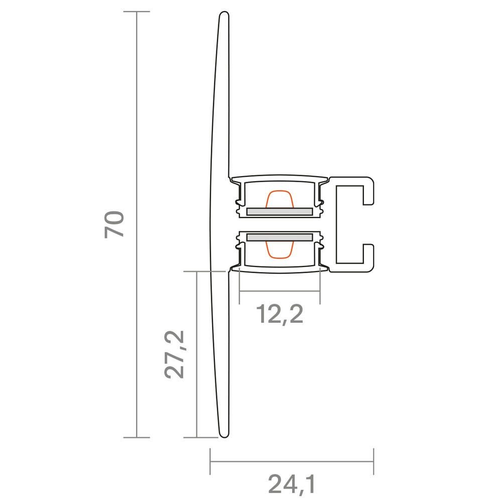 In Verbindung mit einer opalen Abdeckung wird das Licht gestreut und das Lichtbild deutlich homogener. Alternativ kann auch eine klare Abdeckung verbaut werden. In das Profil können LED-Streifen bis zu einer maximalen Breite von 12,2mm eingebaut werden.