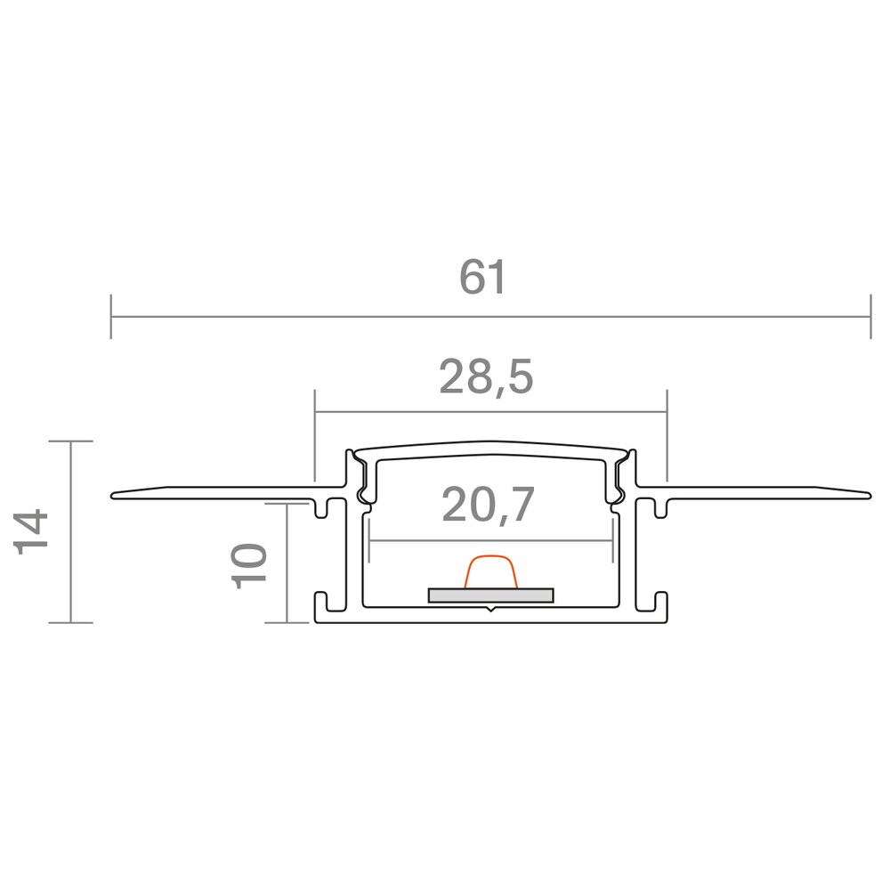 Unser Unterputzprofil 20 in der 1m-Variante findet seinen Einsatzbereich in Wand und Decke. Es wird zur Unterputzmontage verwendet. In Verbindung mit der matten Abdeckung wird das Licht gestreut und das Lichtbild homogener. Diese Abdeckung ist im Lieferumfang enthalten. Des Weiteren wird es zur Wärmeableitung des LED-Streifen verwendet, wodurch sich die Lebensdauer des verbauten Produktes verlängert. Zusätzlich dient es als Schutz des Bandes vor Staub und Feuchtigkeit. Es kann ein LED-Band bis zu einer maximalen Breite von 20mm eingebaut werden.