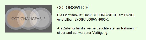 | Lichtfarbe | 2700K / 3000K / 4000K COLORSWITCH |