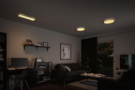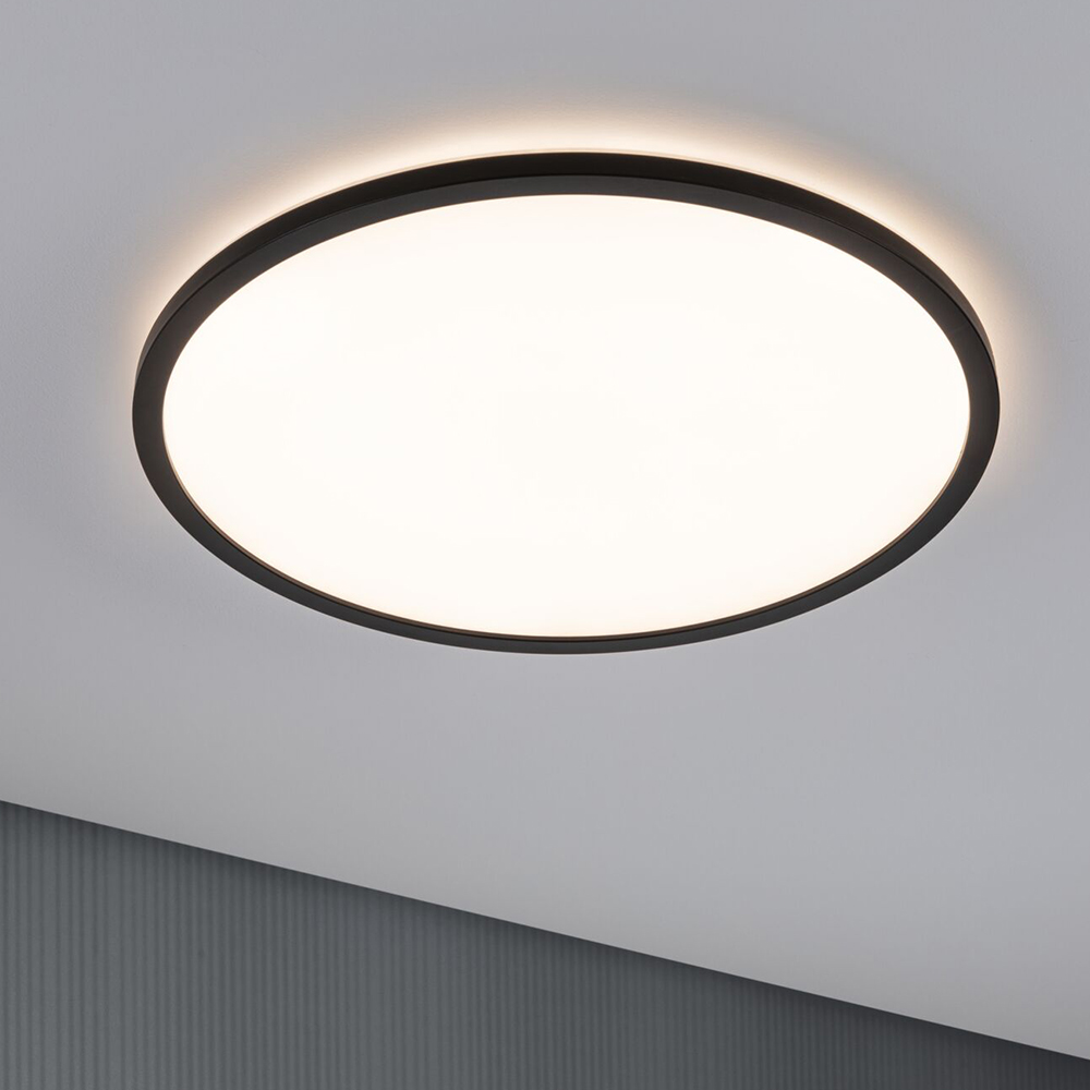 Mit einer Leistung von 22W eignet sich das runde LED Panel Atria Shine in Schwarz und 420mm ideal für die Grundbeleuchtung von Wohn- und Schlafräumen oder Küchen. Das warmweiße Licht des Panels schafft eine gleichmäßige und flächige Raumausleuchtung. Mit der integrierten 3-Step-Dim Funktion kann es durch mehrmaliges Betätigen eines handelsüblichen Lichtschalters in drei Stufen gedimmt werden. Die zusätzliche Backlight Technik zaubert eine besondere Wohlfühlatmosphäre und verleiht dem Panel eine fast schwebend Leuchtoptik. Dank der Schnellklemme und des besonderen Drehverschlusses ist das Panel mit seiner ultraflachen Aufbauhöhe von 28 mm sehr montagefreundlich.