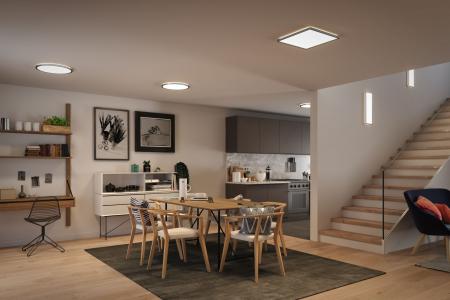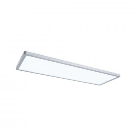 Mit einer Leistung von 22W eignet sich das eckige LED Panel Atria Shine in Chrom matt und 580x200mm ideal für die Grundbeleuchtung von Wohn- und Schlafräumen oder Küchen. Das warmweiße Licht des Panels schafft eine gleichmäßige und flächige Raumausleuchtung. Mit der integrierten 3-Step-Dim Funktion kann es durch mehrmaliges Betätigen eines handelsüblichen Lichtschalters in drei Stufen gedimmt werden. Die zusätzliche Backlight Technik zaubert eine besondere Wohlfühlatmosphäre und verleiht dem Panel eine fast schwebend Leuchtoptik. Dank der Schnellklemme und des besonderen Drehverschlusses ist das Panel mit seiner ultraflachen Aufbauhöhe von 28 mm sehr montagefreundlich.