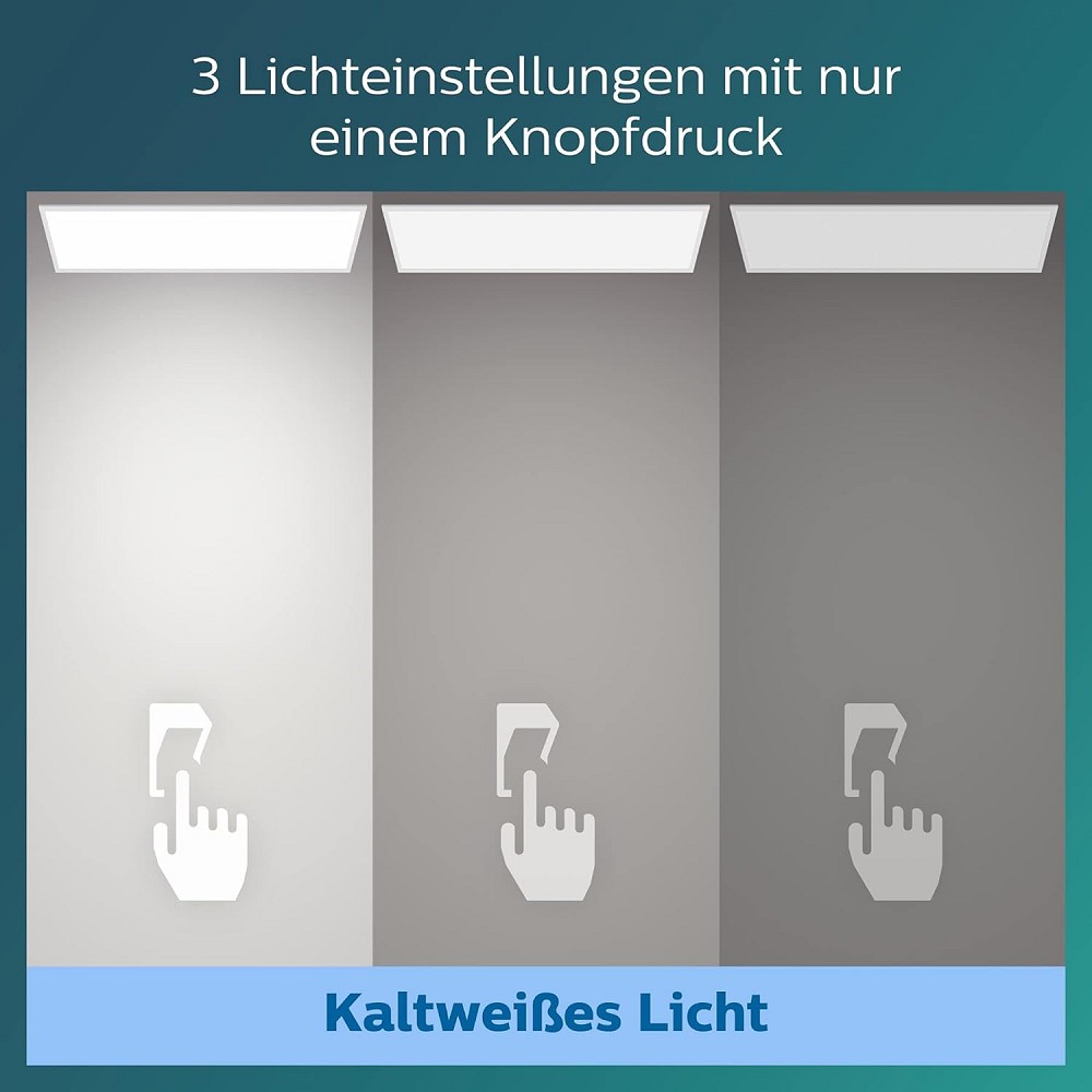 Das Panel kann dank der Scene-Switch-Funktion ohne zusätzlichen Installationsaufwand über den vorhandenen Lichtschalter in drei Helligkeitsstufen geschaltet werden.