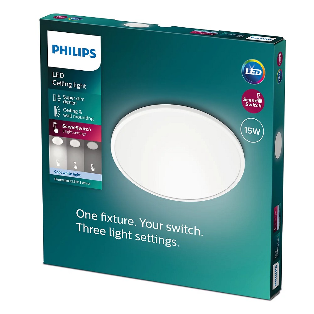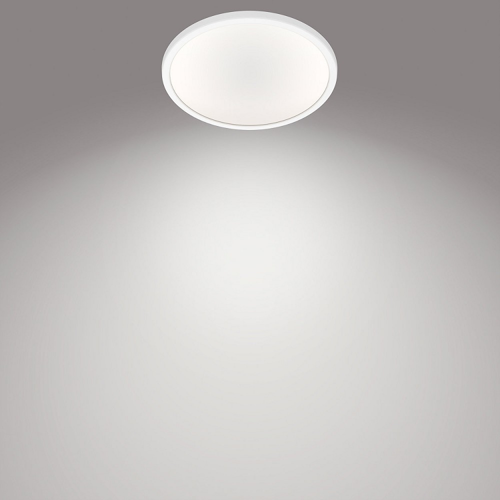Philips myLiving Deckenlampe ist eine runde weiße Deckenleuchte, die Bereiche in Ihrem Zuhause mit einem Lichtkegel aus universalweißen LED-Licht ausleuchtet. Das angenehme, blendfreie Licht wird durch einen Ring, der für einen gemütlichen Lichteffekt sorgt, noch optimiert.
