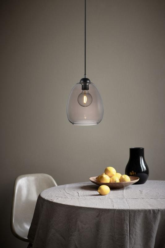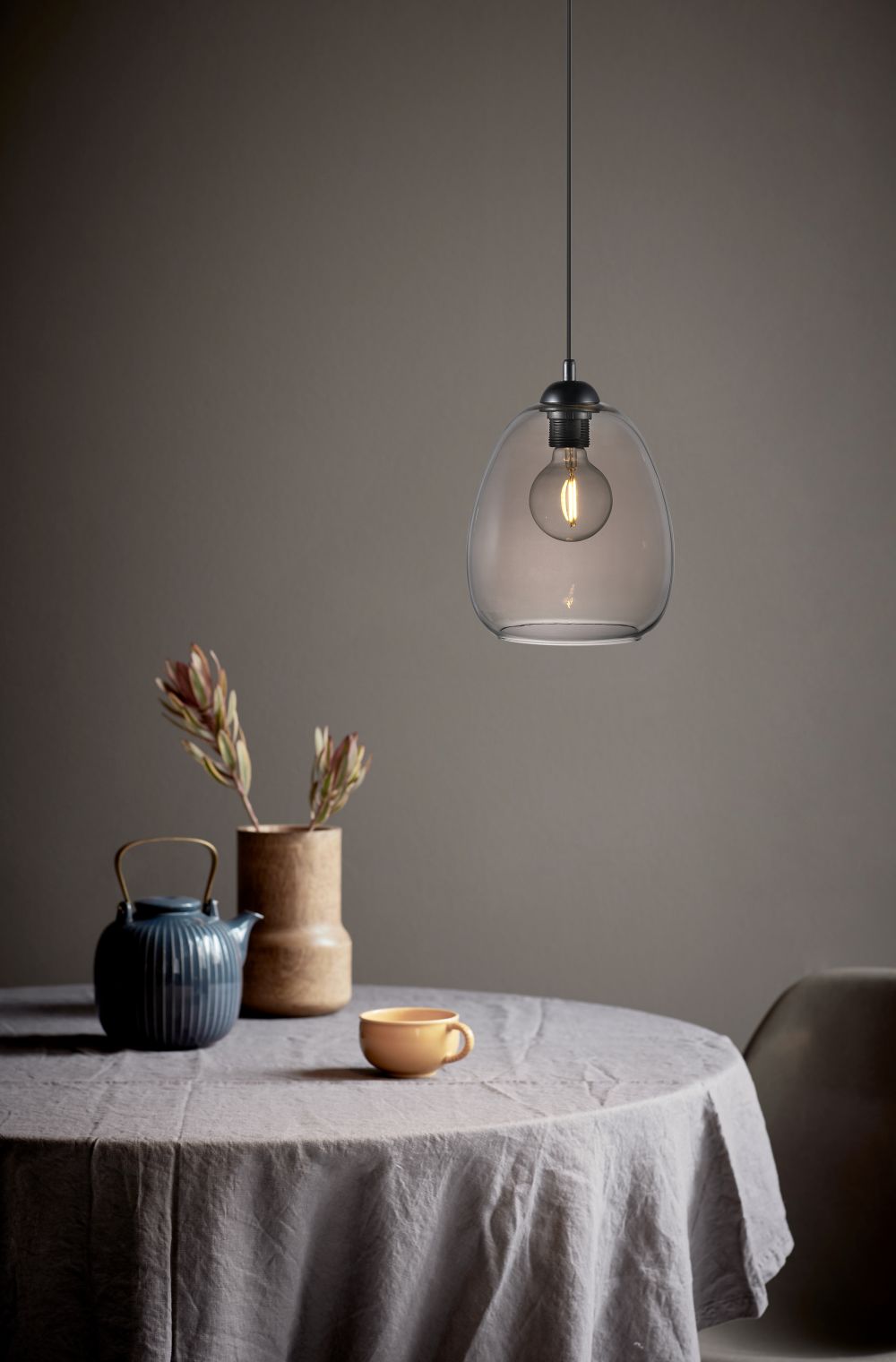 Die Dillon ist eine dekorative Pendelleuchte, bei der die Materialwahl und die leichten organische Form der Leuchte eine hohe handwerkliche Fertigkeit verleihen. Die Fassung ist von transparentem rauchigen Glas umgeben, welches der Leuchte einen schönen Glanz verleiht. Dillon ist eine attraktive Hängeleuchte, die mit ihrem modernen Look alle Blicke auf sich ziehen wird. Diese schicke Leuchte eignet sich gut für den Einsatz über dem Esszimmertisch oder auch über einer Theke. Die stilvolle Leuchte integriert sich mühelos harmonisch in ein modernes Gesamtkonzept, wodurch die Leuchte auch im ausgeschalteten Zustand zu einem wahren Blickfang an zentraler Stelle des Raumes wird.