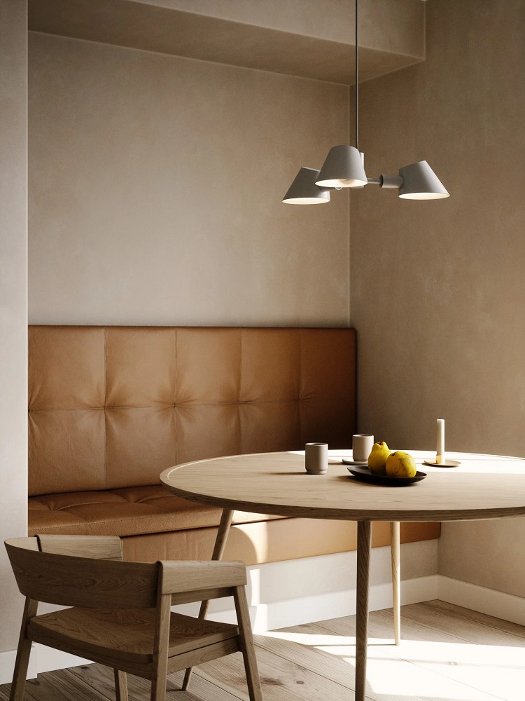 Die von Maria Berntsen entworfene Hängeleuchte Stay mit 3 Leuchtköpfen verkörpert ein modernes und gleichzeitig zeitloses Beleuchtungsdesign. Durch das abgeschrägte Profil des Lampenschirms entsteht eine offene, pointierte Form, die viel Licht durchscheinen lässt. Die Pendelleuchte Stay strahlt sowohl nach oben als auch nach unten ein weiches, angenehmes Licht aus und schafft das perfekte Ambiente für gemütliche Momente rund um den Esstisch.