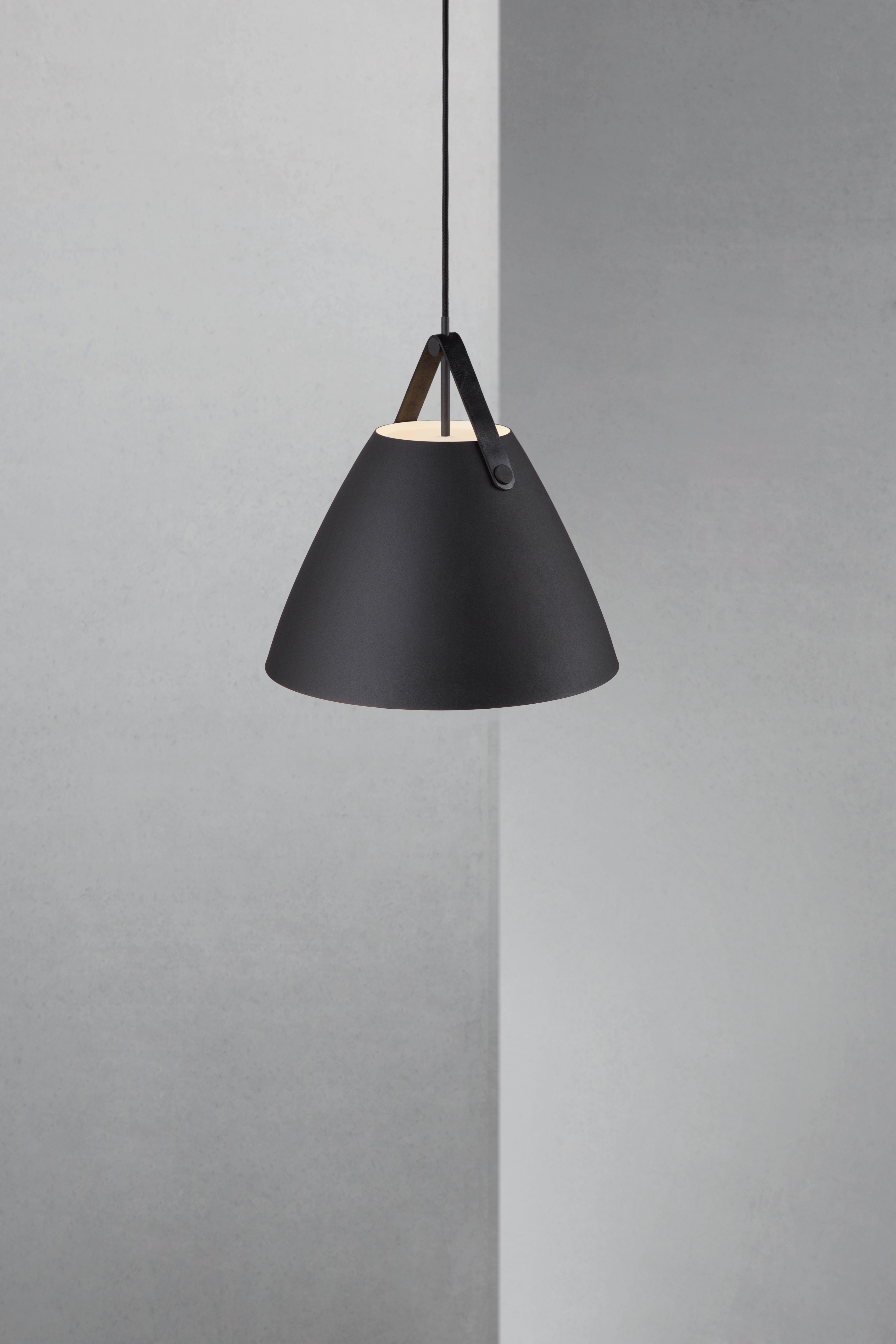 Die hübschen Details, die aus Tombak gefertigt sind und über eine seidenmatte Oberfläche verfügen, verleihen der Pendelleuchte eine Kombination aus warmer und industrieller Optik. Metall und Leder spielen wunderbar mit dem leichten nordischen Stil zusammen. Deren Kombination bewirkt zudem, dass die Leuchte sich visuell hervorragend in die moderne Einrichtung fügt, bei welcher der Materialmix derzeit zu einem der größten Trends zählt. Bei STRAP wirkt dies einleuchtend – ebenso einleuchtend wie die Tatsache, dass ein Lederriemen dieser nordischen Designleuchte ihren Namen gegeben hat. Durch den schmalen und eleganten Lederriemen erhält STRAP eine sowohl warme als auch rohe Ausstrahlung und hält damit die Waage zwischen dem klassischen und dem Industriellen Stil. Es werden zwei Lederriemen in den Farben Braun und Schwarz mitgeliefert - somit ist es Ihnen überlassen, über den endgültigen Look von STRAP zu entscheiden. Design by Bjørn + Balle.