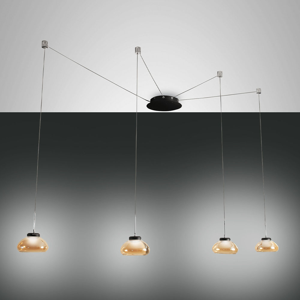 Die Arabella LED-Pendelleuchte ist so anpassungsfähig, dass es fast so ist, als ob Sie zwei Lampen in einer bekommen würden. Sie erhalten vier separate Aufhängungen und acht Schlitze für den Baldachin, sodass Sie ihn nach Herzenslust einstellen können. Jede Aufhängung nimmt einen Schlitz ein, so dass Sie dafür sorgen können, dass sich das Licht gleichmäßig in Ihrem Raum verteilt.