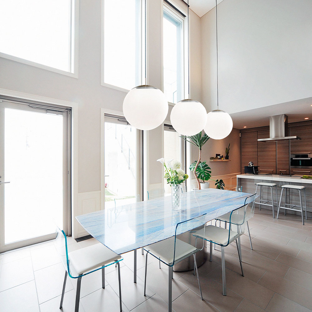 BONG Pendelleuchte & Kugellampe mit einem weißen runden Glasschirm