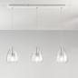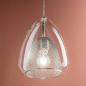 Der innen eingearbeitet Metallkörper der Leuchte bildet eine stabile Basis, während der Schirm aus mundgeblasenem Glas besteht, in dem kleine Lufteinschlüsse als Zeichen hochwertiger Glaskunst zu sehen sind.