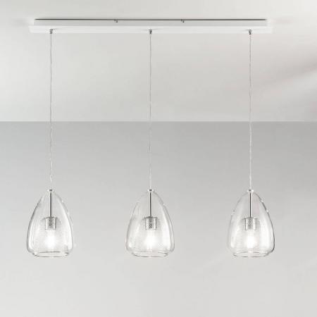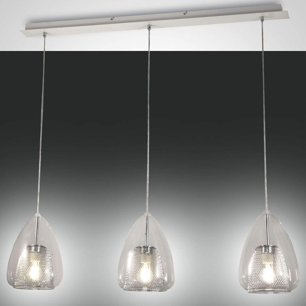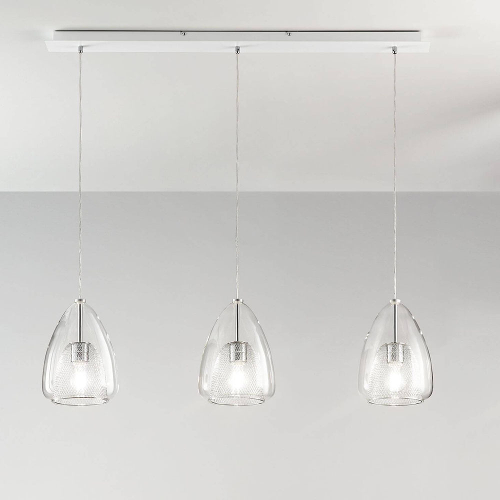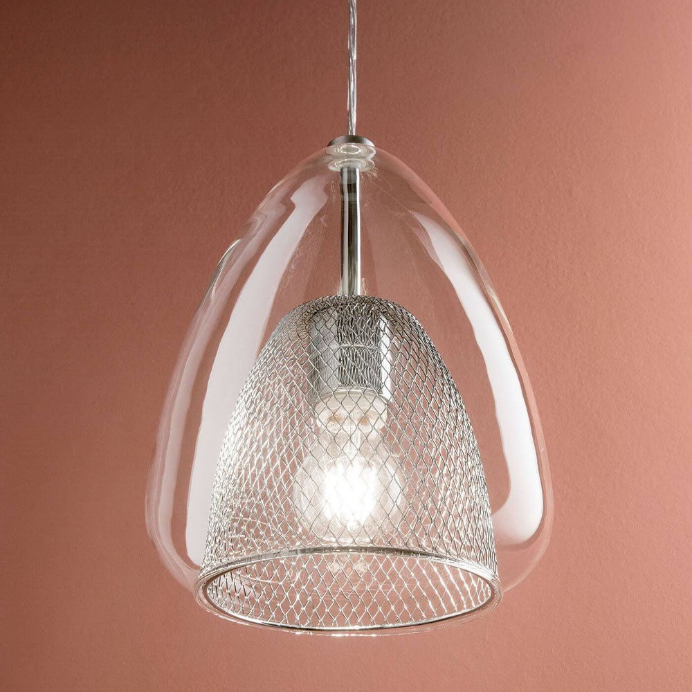 Die Fabas Luce Pendelleuchte Britton ist eine attraktive Pendelleuchte aus Glas mit Gittereinlage für ein stilvolles Lichterlebnis. Diese Lampe eignet sich hervorragend zum Aufhängen über großen Esstischen kann auf die gewünschte Höhe eingestellt werden.