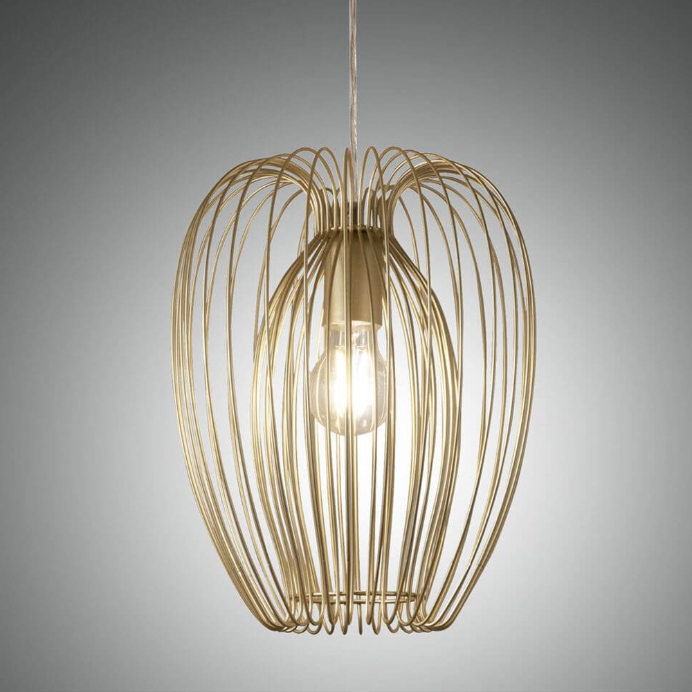 Das benötigte Leuchtmittel kann in die Leuchte eingeschraubt werden. Vorteile bei Leuchten mit Fassung sind, dass Sie das passende Leuchtmittel mit der benötigten Farbtemperatur selbst auswählen können und im Falle eines Defektes oder Nichtgefallens einfach austauschen können. Am besten passt ein klares LED-Filament Leuchtmittel, daß wenige Strom verbraucht.