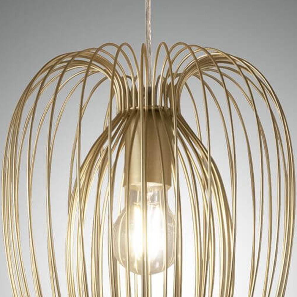 Die höhenverstellbare Camp Pendelleuchte ist ein echter Blickfang. Die geometrische Leuchte ist aus Drahtstreben gefertigt und verfügt über einen doppelten Korb aus gebogenem Drahtgeflecht. Wählen Sie selbst eine passende Glühbirne, die Sie dann durch die symmetrisch angeordneten Drahtstreben bewundern können.