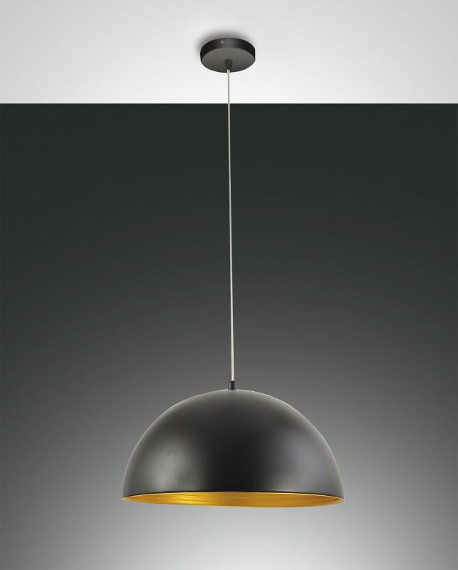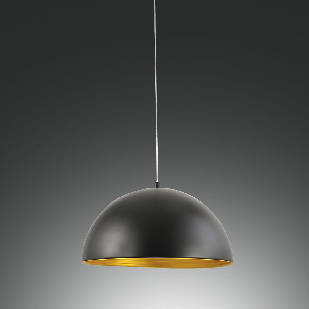 Pendelleuchte mit einem halbrunden Schirm und Goldinnenausstattung