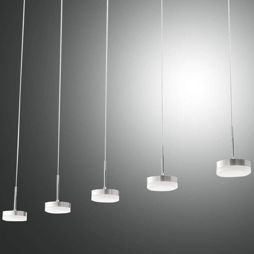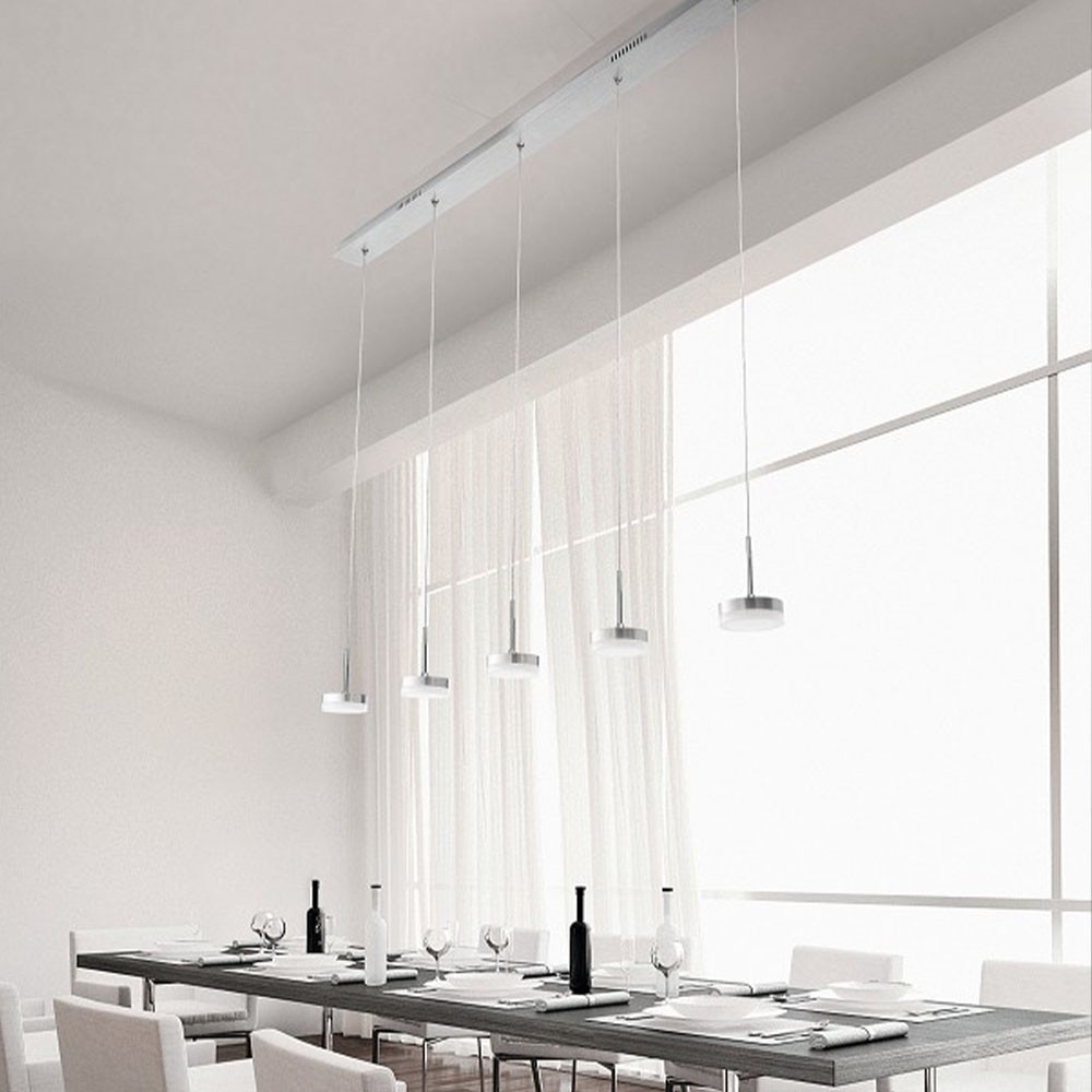5-flammige moderne dimmbare Pendelleuchte aus gebürstetem Aluminium und Glas