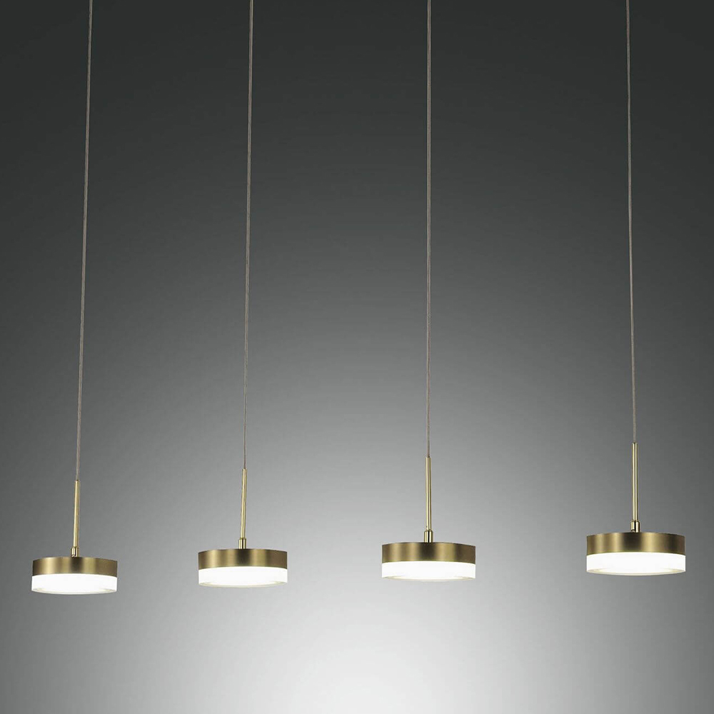 Diese hochwertige Pendelleuchte verzichtet völlig auf überflüssige Schnörkel. Mit ihren insgesamt 3780 Lumen ist sie leistungsstark und vermag einen großen Eßtisch ausreichend zu beleuchten. Das warmweiße Licht der Pendelleuchte wird dank der satinierten Glasoberfläche der Leuchtkörper blendfrei nach unten abgestrahlt. Der Sockel der Leuchte ist 90 cm breit x 8 cm breit.