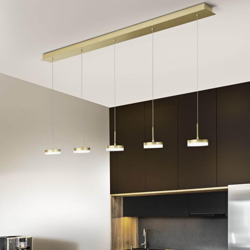 In der Leuchte sind je 5 LED-Leuchtmittel mit je 8 Watt bereits integriert, Deckenabhängung max. 200cm - individuell einstellbar.