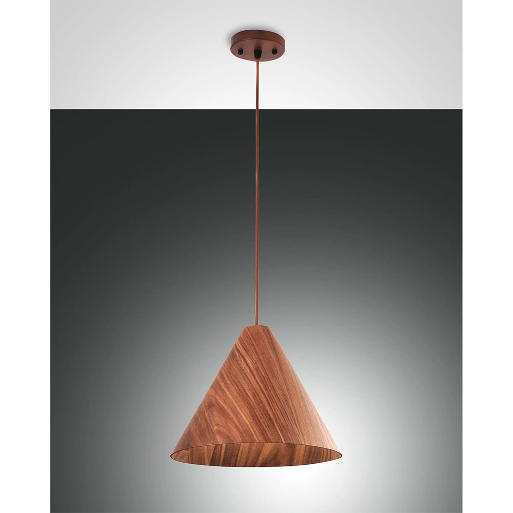 Das sehr schlichte Design in Form eines Kegels ohne Schnörkel strahlt durch seine Walnussfarbe und Holzmaserung Gemütlichkeit aus.