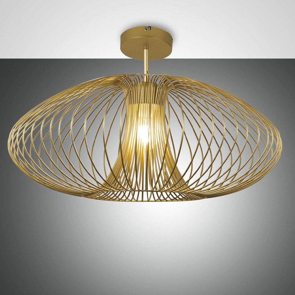 Die Fassa Deckenleuchte ist ein echter Blickfang. Die geometrische Leuchte ist aus Drahtstreben gefertigt und verfügt über einen doppelten Korb aus gebogenem Drahtgeflecht. Wählen Sie selbst eine passende Glühbirne, die Sie dann durch die symmetrisch angeordneten Drahtstreben bewundern können.
