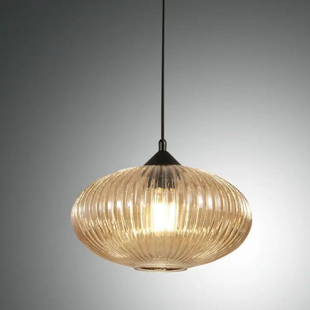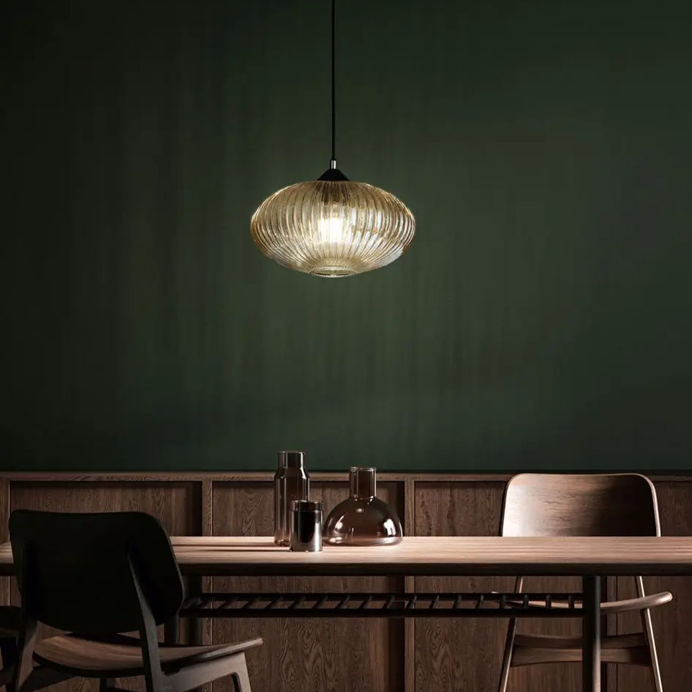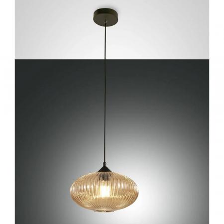 Fiordaliso ist eine Pendelleuchte aus geblasenem Glas. Diese Leuchte hat einen bernsteinfarbenen Ton mit einer strukturierten Glasoberfläche. Die Hängeleuchte ist mit einer E27-Fassung ausgestattet, sodass Sie jede beliebige E27-Lampe verwenden können, um die richtige Beleuchtung für Ihren Raum zu schaffen!
