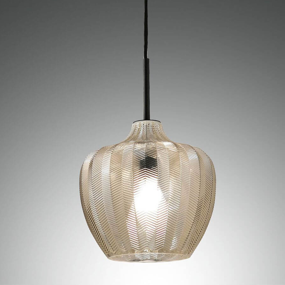 Die Gallura Pendelleuchte von Fabas Luce ist ein raffiniert gestalteter Hingucker mit einer facettierten Glasstruktur.