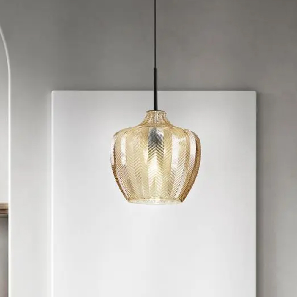 Die klassische Gallura-Pendelleuchte von Fabas Luce besticht durch ihren raffiniert gestalteten Glasschirm. Bei genauerem Hinsehen fällt auf, dass sich ein facettenartiges Muster im "Oriental-Look" durch das prächtig gefärbte Glas zieht. Ein gleichmäßiges, blendfreies Licht, sorgt für eine gemütliche Atmosphäre in Ihrem Wohnzimmer.