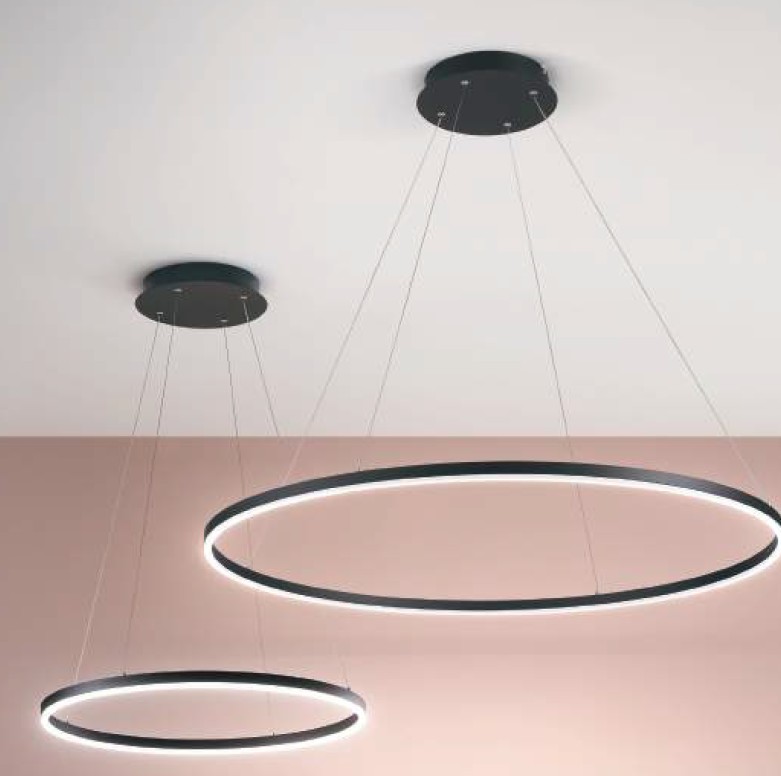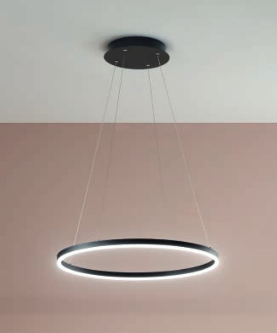 Diese dimmbare Pendelleuchte strahlt durch Ihren schmalen grazilen Ring eine italienische Leichtigkeit aus. Eine äußerst moderne und unaufdringliche Hängeleuchte, die sich in viele Wohnambiente problemlos einfügen läßt und elegant als Solitär über dem Eßtisch, in der Einganghalle oder Galerie wirkt. Mit 3240 Lumen ist die Giotto eine leistungsstarke Leuchte, die viel Licht spendet.