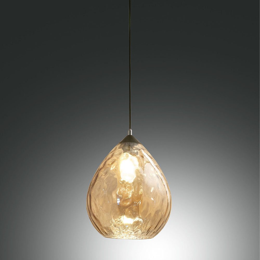 Gisella ist eine Pendelleuchte aus mundgeblasenem Glas. Diese Leuchte hat einen bernsteinfarbenen Ton mit einer strukturierten Glasoberfläche. Die Hängeleuchte ist mit einer E27-Fassung ausgestattet, sodass Sie jede beliebige E27-Lampe verwenden können, um die richtige Beleuchtung für Ihren Raum zu schaffen!